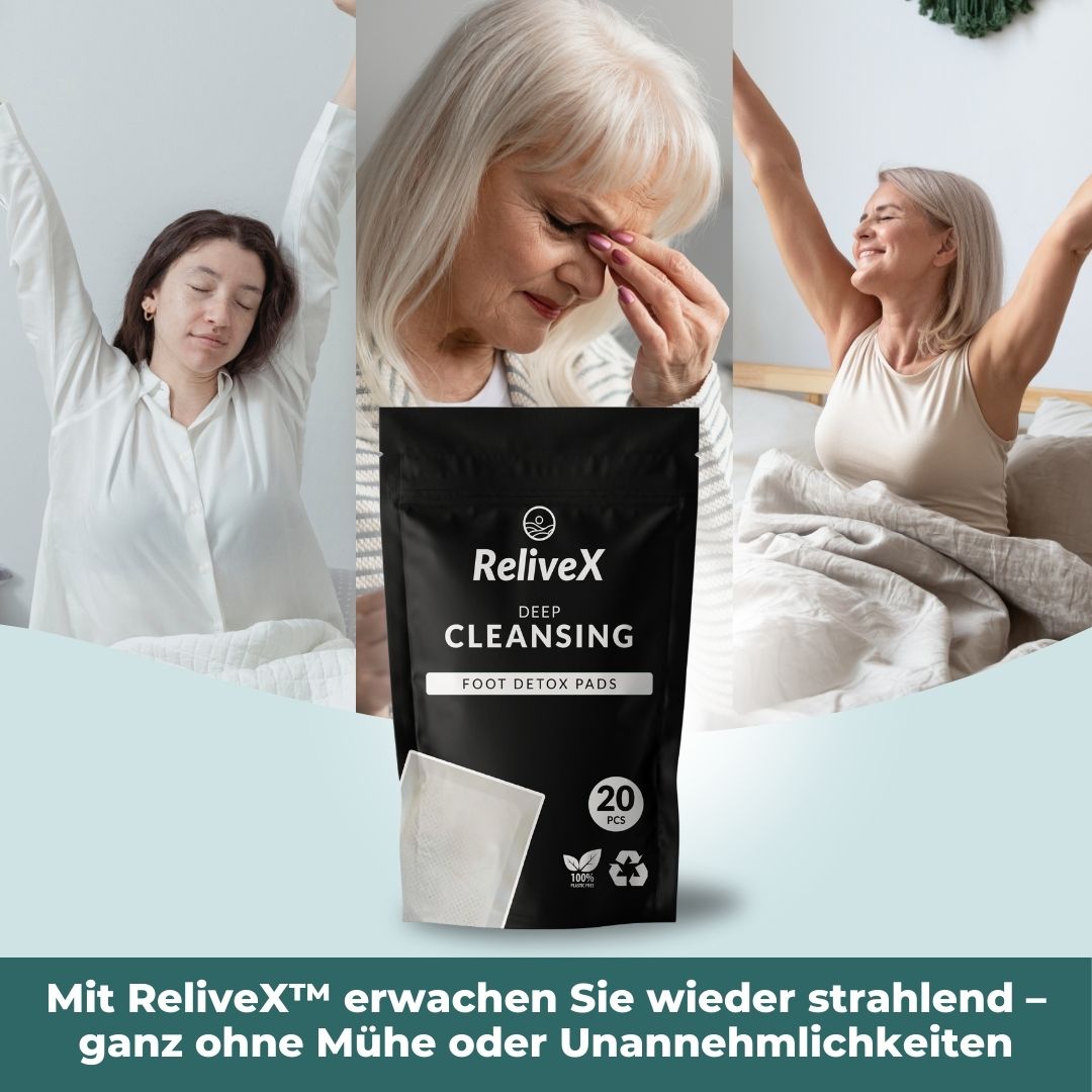 Verbessern Sie Ihr Wohlbefinden mühelos mit den ReliveX Detox Patches. Während Sie schlafen, lindern sie Beschwerden, bauen Stress ab, lindern Kopfschmerzen und stellen Ihr Energieniveau wieder her.